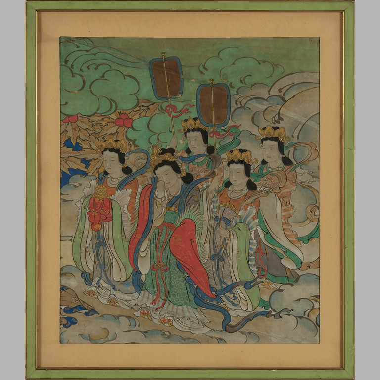 'Cinque figure femminili che compiangono il Budda' dipinto inizio dinastia Qing sec.XVIII