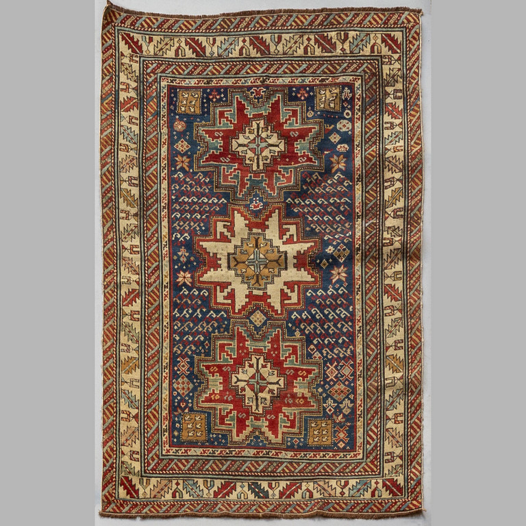 Tappeto Cuba a tre rombi su fondo blu Caucaso inizi sec.XX