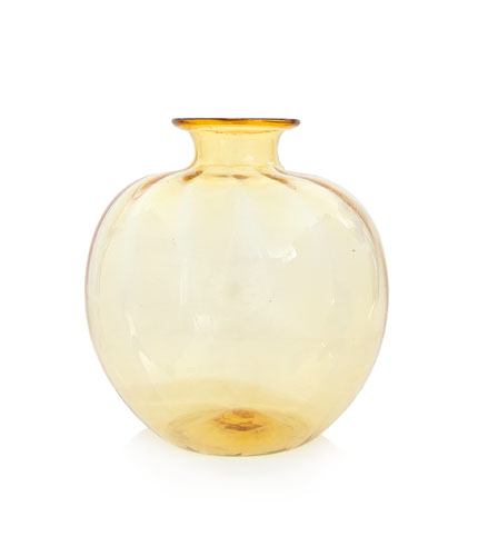 VASO IN VETRO SOFFIATO, MVM CAPPELLIN MURANO, 1925 CA., globulare con leggera baccellatura, firma ad acido "MVM Cappellin Murano".