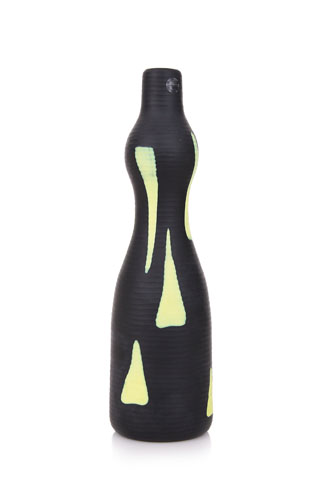 VASO "AROS" IN VETRO BATTUTO, VENINI, A.MENDINI, 1998, sagomato nero e giallo, firma alla punta "venini 98 A.Mendini".