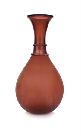 VASO IN VETRO AMETISTA, VENINI, N,MARTINUZZI, ANNI '40, piriforme con doppio anello al collo applicato a caldo; firma ad acido "venini murano ITALIA".