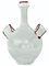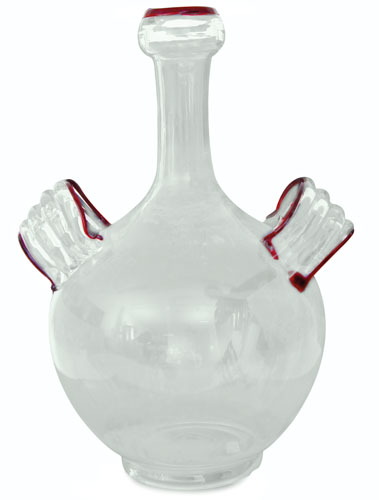 VASO IN VETRO TRASPARENTE, VENINI, N,MARTINUZZI, ANNI '30, piriforme con doppia ansa e bordi rossi applicati a caldo; non firmato.