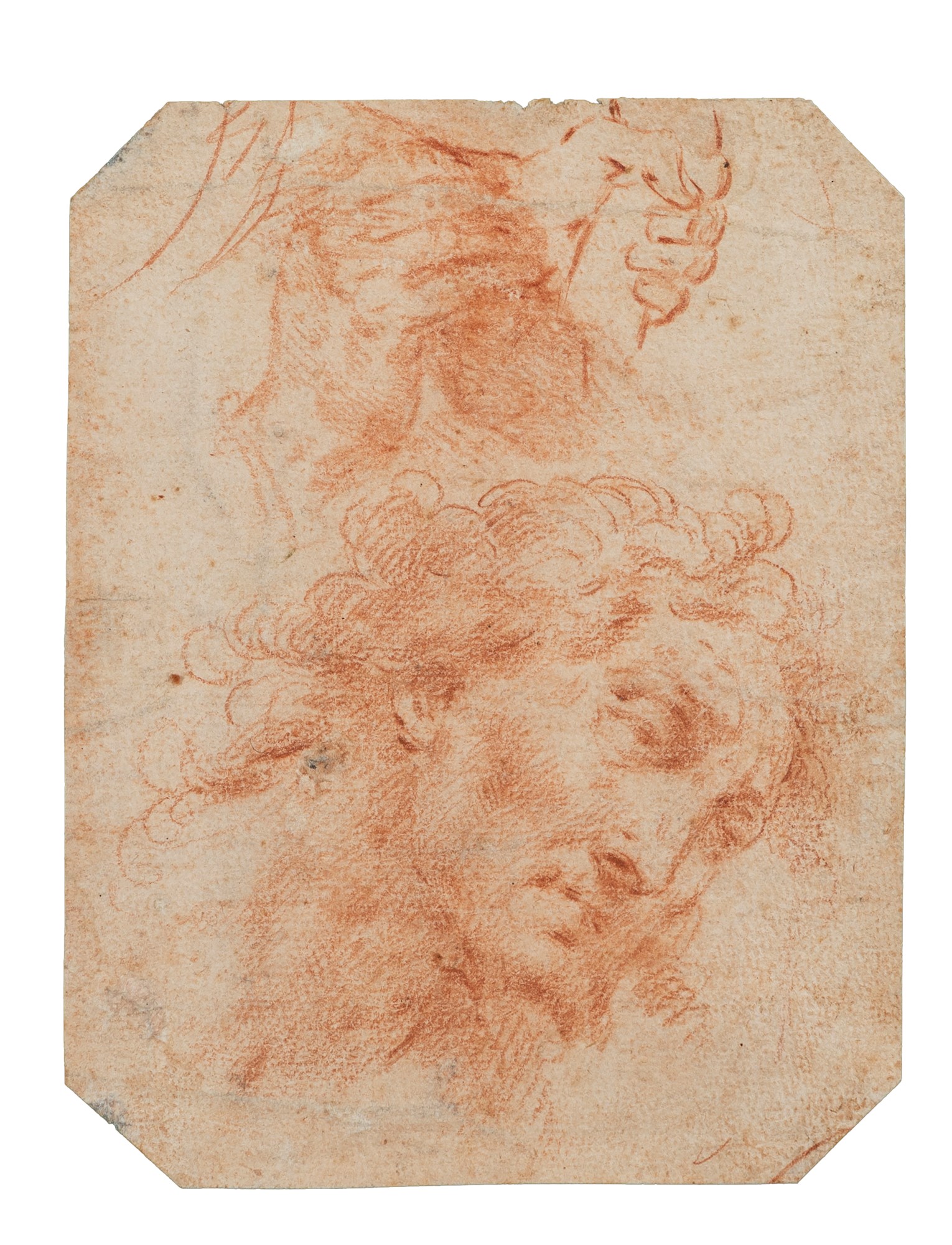 Scuola lombarda, secolo XVII - Studio di testa e mani (recto); Studio per crocifisso (verso)