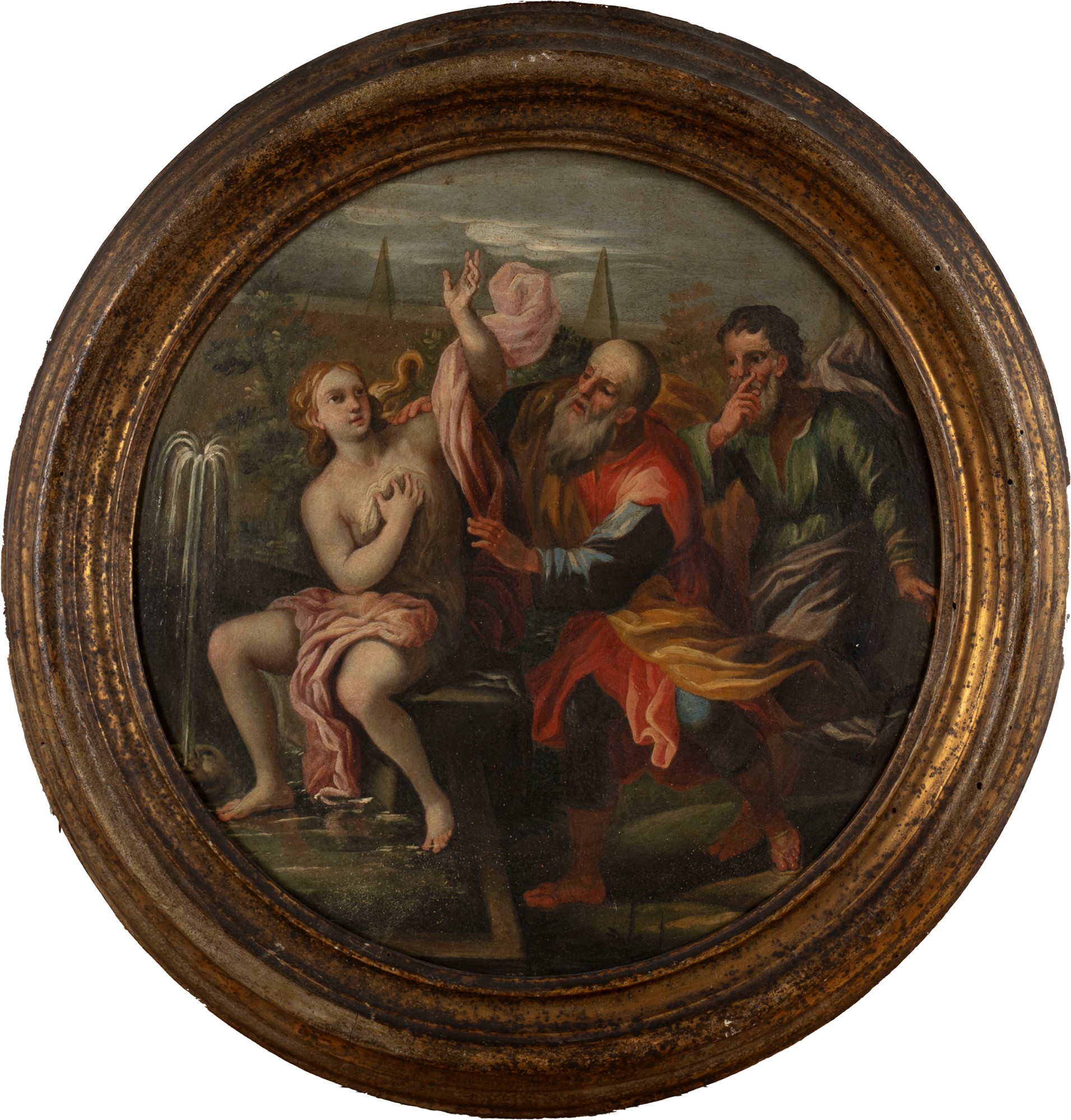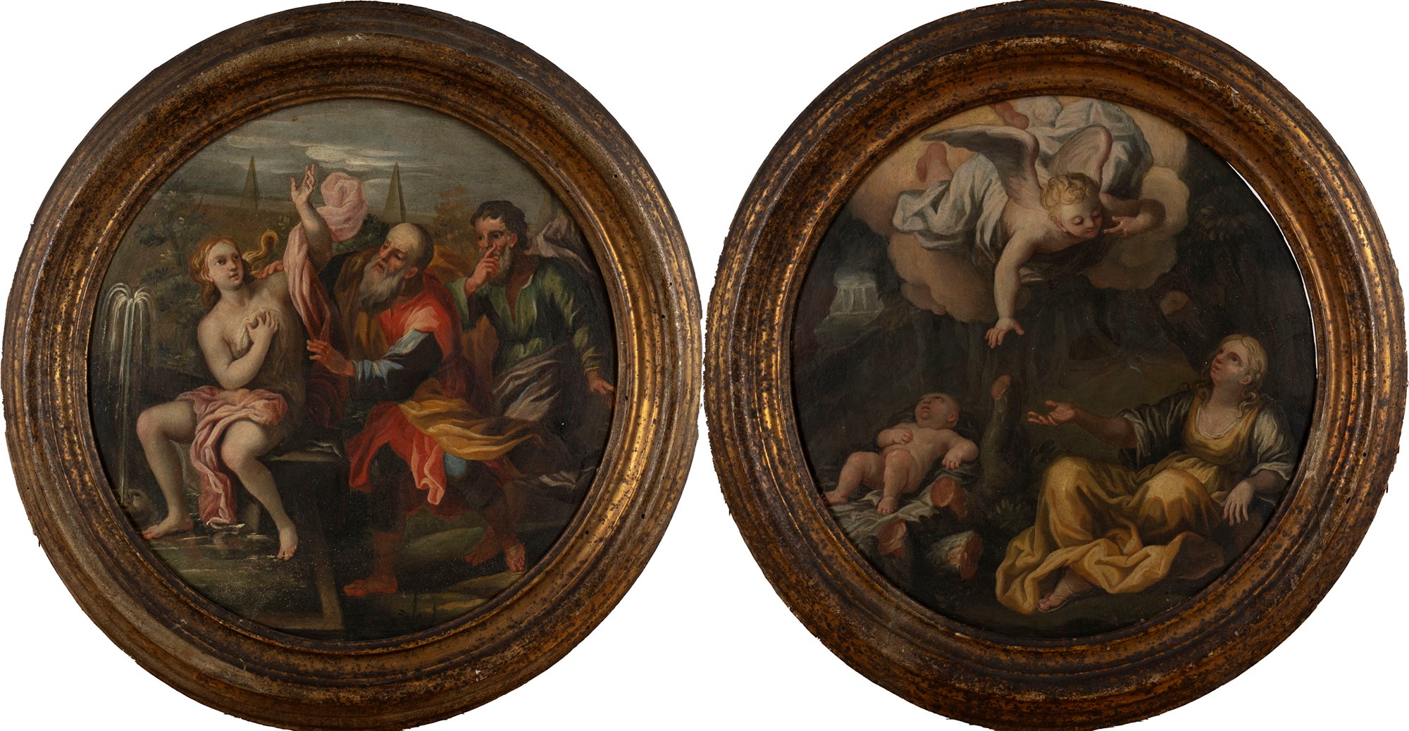 Scuola napoletana, secolo XVIII - Due scene dal Vecchio Testamento: Agar e l'Angelo e Susanna e i Vecchioni