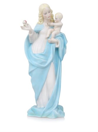"MADONNA DEL MELOGRANO" IN CERAMICA, LENCI, A.JACOPI, ANNI '40, decoro policromo.