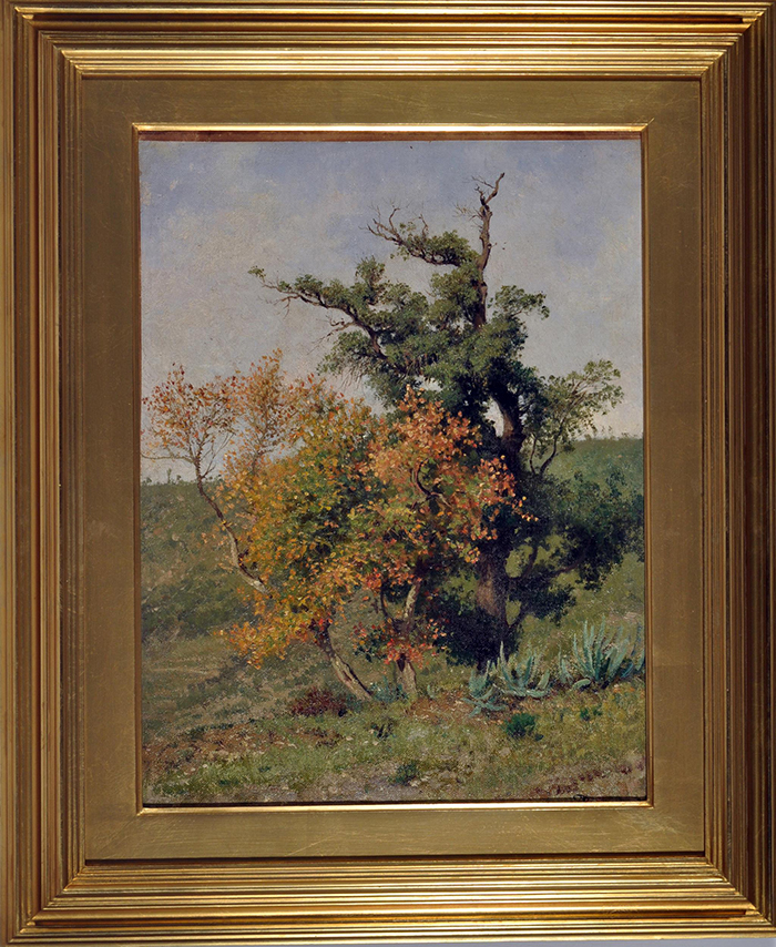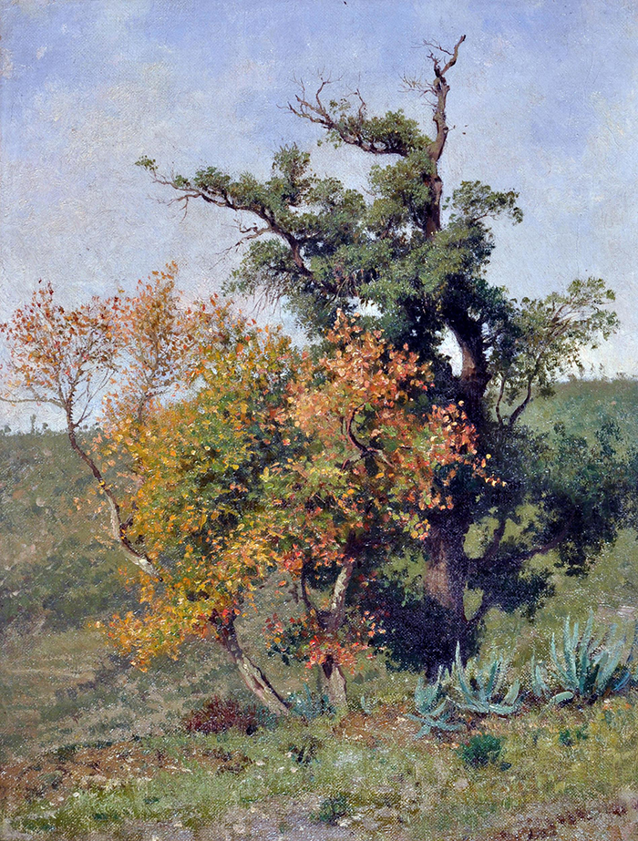 Rossano Federico (Napoli 1835 - 1912) Alberi olio su tela, cm 36,5x28 firmato in basso a destra: Rossano