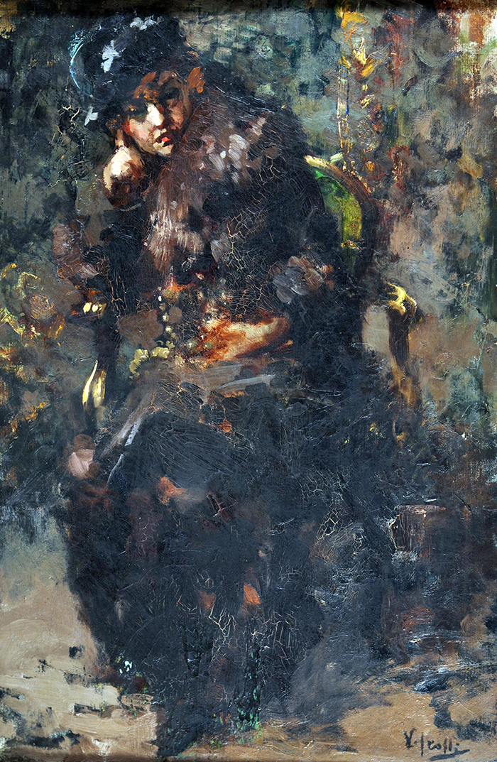 Irolli Vincenzo (Napoli 1860 - 1949) Nobildonna olio su tela, cm 77,5x50,5 firmato in basso a destra: V. Irolli