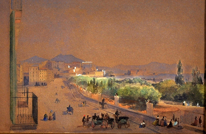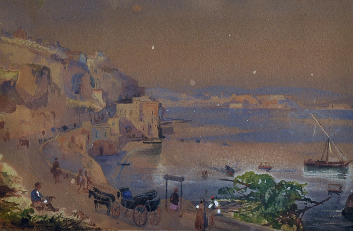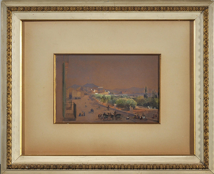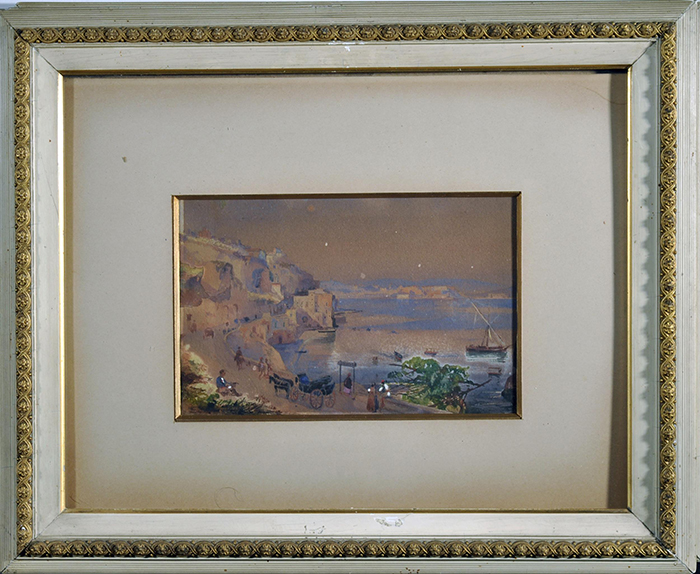 Scuola di Posillipo (Prima meta del XIX secolo) a) Villa Comunale tecnica mista su carta, cm 13,5x21 b) Posillipo tecnica mista su carta, cm 13,5x21