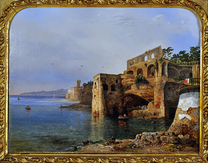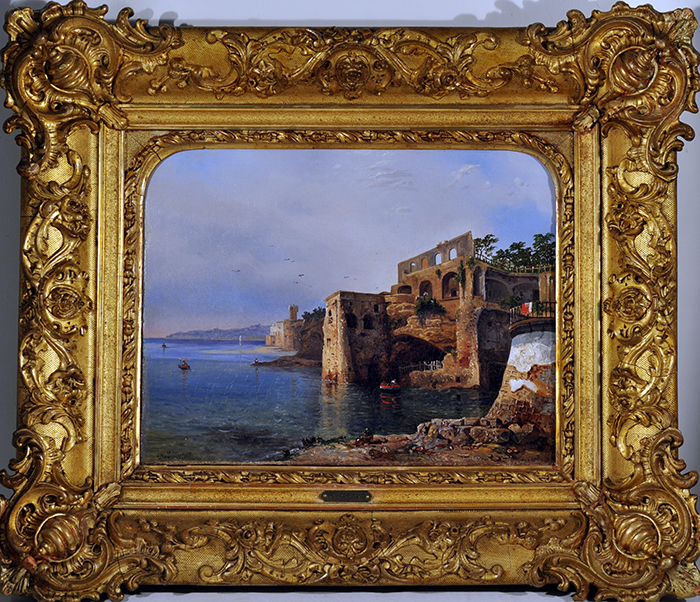 De Francesco Beniamino (Barletta, 1815 – Dinard,1869) Costiera amalfitana olio su tela, cm 34x41 firmato in basso a sinistra: De Francesco