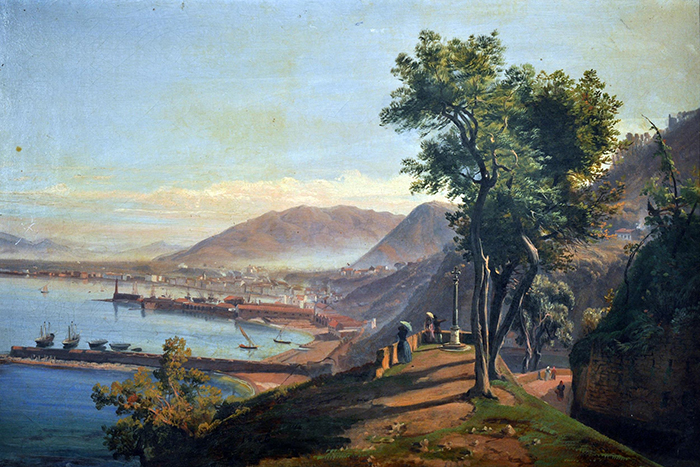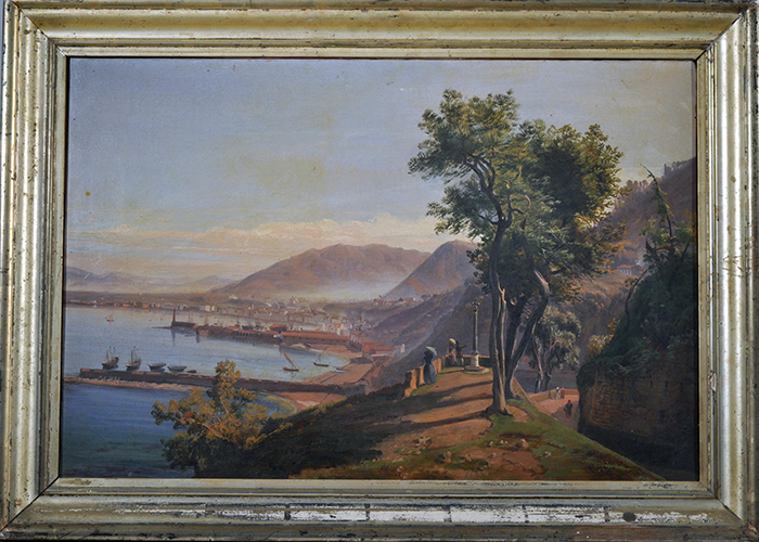 Fergola Salvatore attr. (Napoli 1799 - 1874) Castellammare olio su tela, cm 48x71 datato al centro: 1846