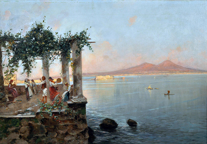 Ricciardi Oscar (Napoli 1864 - 1935) La tarantella olio su tela cm 42x62 firmato in basso a destra: Ricciardi