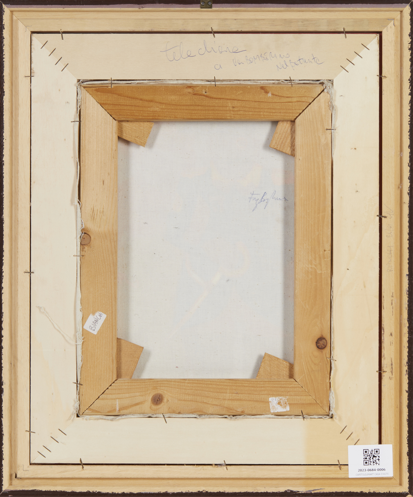 BORGHESE FRANZ (1941 - 2005) Senza titolo. Olio su tela . Cm 30,00 x 40,00. Firma in basso a destra e al retro. Autentica dell'artista su fotografia con timbro Galleria Lisi, Roma. Opera in corso di archiviazione presso lo Studio Franz Borghese. Cornice presente
