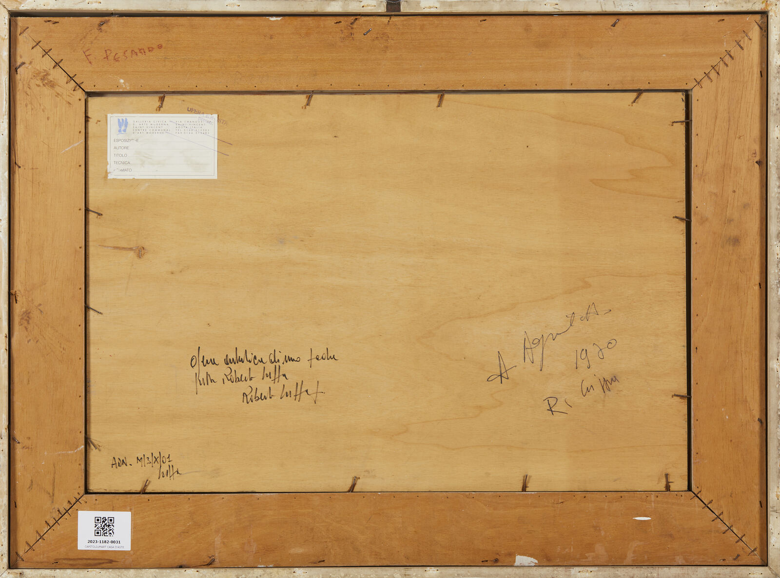 CRIPPA ROBERTO GAETANO (1921 - 1972) Sugheri. 1960. Collage su tavola. Cm 59,00 x 39,50. Al retro dedica, firma e anno. Autentica su fotografia di Roberto Crippa Jr riportante il relativo numero d'inventario. Cornice presente