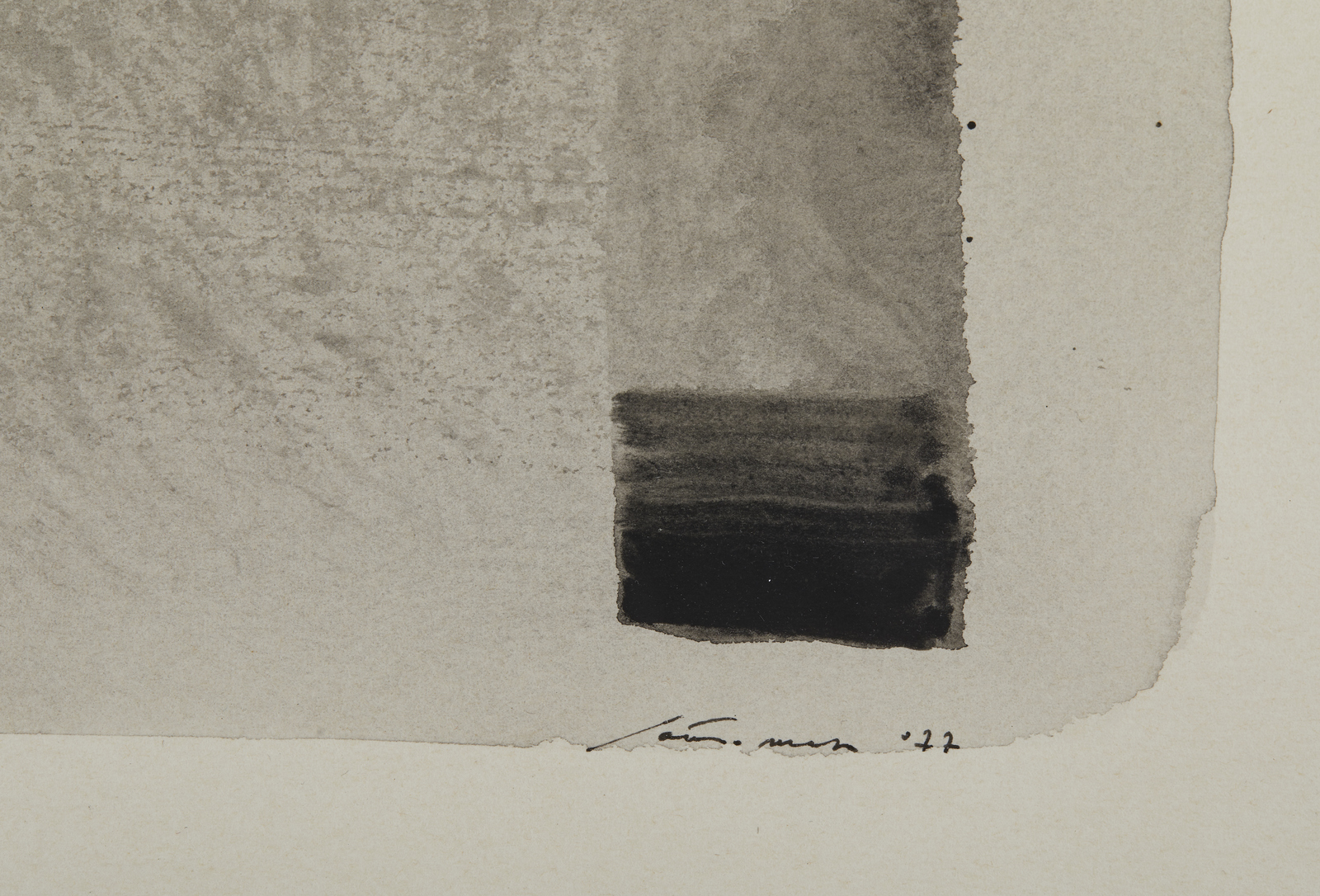 SANTOMASO GIUSEPPE (1907 - 1990) Forma astratta. 1977. Tecnica mista su carta. Cm 50,00 x 60,00. Firma e anno in basso a destra. Opera registrata presso l'Archivio Santomaso - Galleria Blu, Milano, con il seguente numero d'inventario #sct/1315. Cornice presente