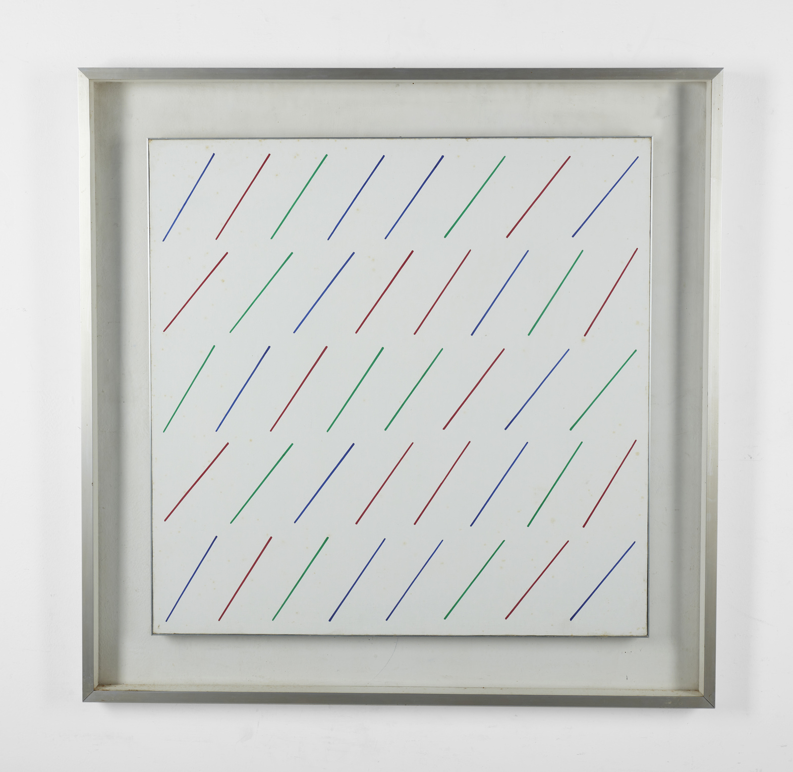 NIGRO MARIO (1917 - 1992) Speranza di un'amore. 1974. Tempera su tela. Cm 65,00 x 65,00 x 2,50. Firma al retro. Opera archiviata presso l'Archivio Mario Nigro, Milano, con il seguente numero d'inventario: #0624.1 MN. Lievi difetti. Cornice presente