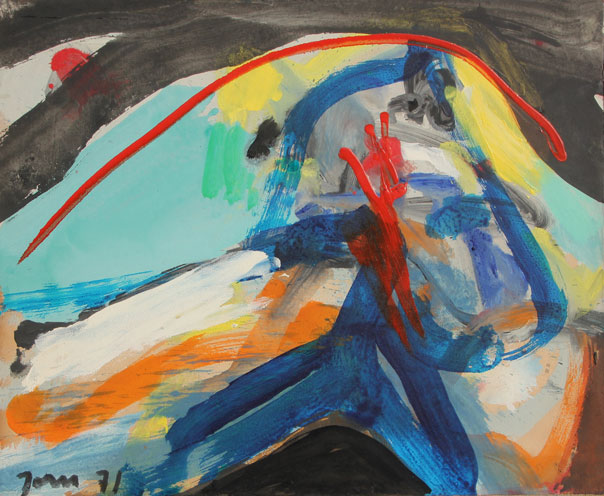 JORN Asger Vejrum (Danimarca), 1914 - Aarhus (danimarca), 1973 Composizione, 1971 acrilico su carta applicata su tela cm. 39 x 48 Firma, data 'Jorn, 71' (in basso a sinistra) Autentica a cura di Giovanni Schubert, perito del tribunale di Milano