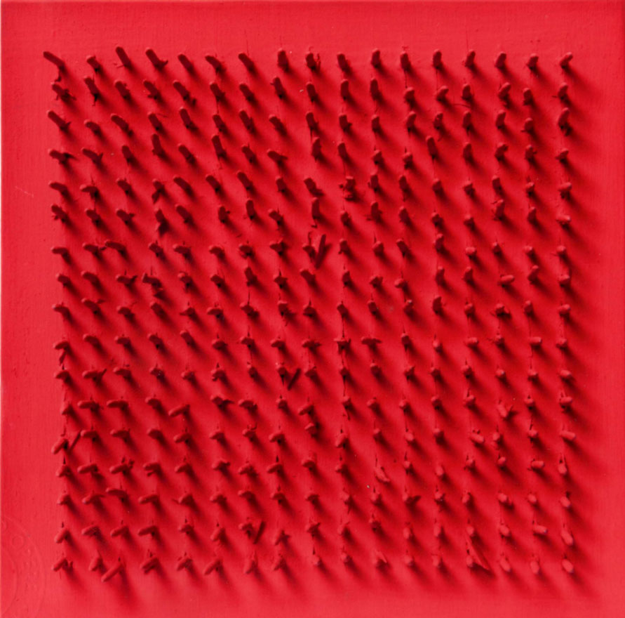 AUBERTIN Bernard Fontenay-aux-Roses 1934 Tableau clous, 1969 chiodi su tavola cm. 20 x 20 Firma, data 'Bernard Aubertin, 1969' (al retro) Autentica dell'artista su fotografia