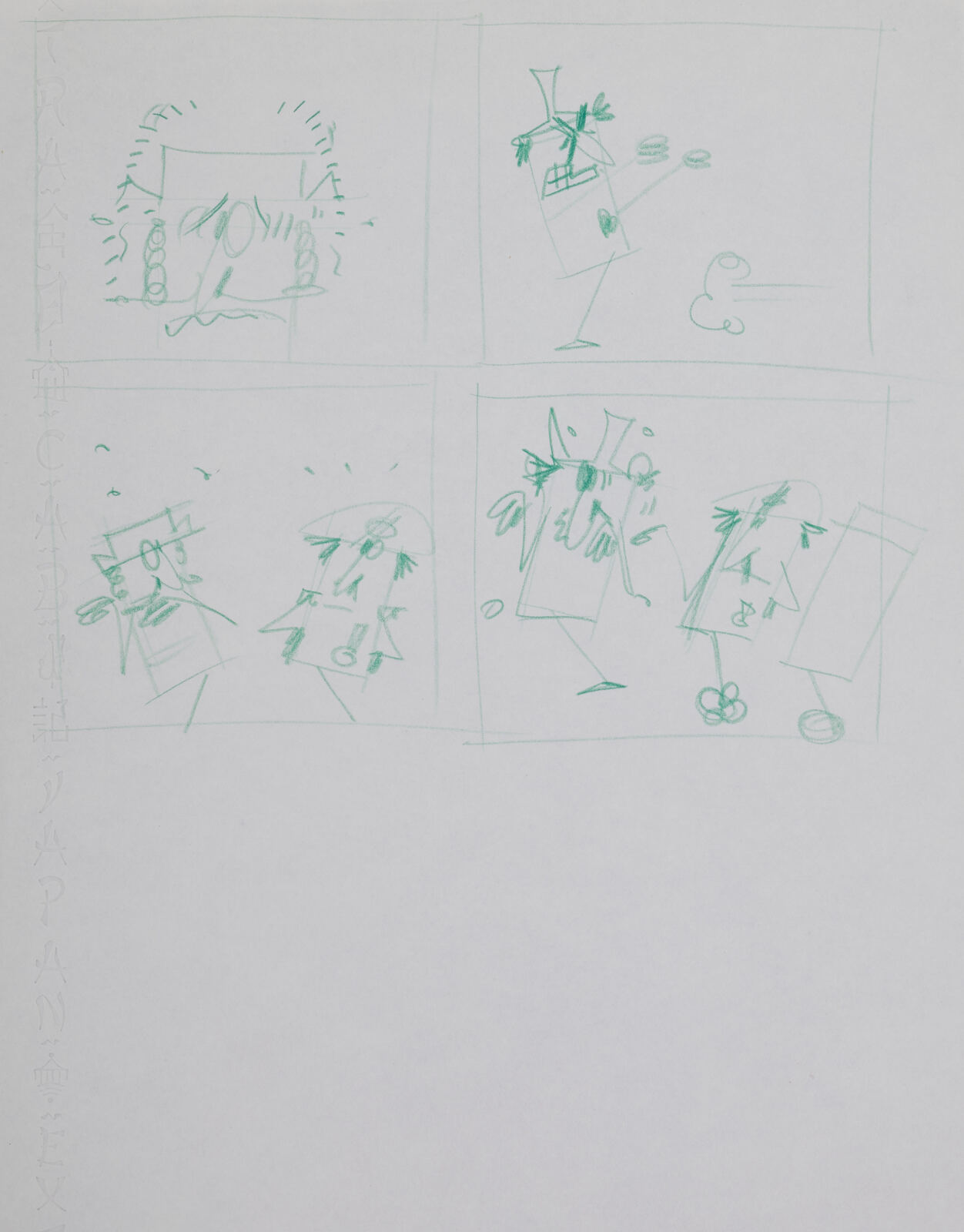 LODOLO FILM Della serie Sketches dei Posteros . mista su carta. Cm 21,00 x 29,00. Il lotto proviene dagli archivi dei collaboratori della Lodolo Film, storica società di spot pubblicitari e di animazione italiana nata verso le fine degli anni 50. I Posteros, personaggi di fantasia, primitivi del futuro, nascono dalla collaborazione di Pino Pascali con la Lodolo film nel1958, un anno prima del suo diploma all’Accademia di Belle Arti di Roma; sodalizio che durò sino al 1967. Sandro Lodolo, titolare della casa di produzione pubblicitaria, e Pino Pascali, nel ruolo di creativo, realizzarono innumerevoli spot e cartoons pubblicitari. Gli Intermezzi che videro proprio i Posteros come protagonisti furono eseguiti , sia in bianco e nero che a colori, nel 1962 e nel 1968, anno della morte di Pascali, quando vennero ripresi da Lodolo come studio per i personaggi di un nuovo contenitore pubblicitario del secondo programma della Rai.