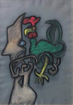 MATTA ECHAURREN Sebastian Santiago del Cile 1911 - Civitavecchia 2002 Gallo alla diavola, 1970 pastelli su carta intelata cm. 100 x 70 Firma 'Matta' (in basso a destra) Dichiarazione di autenticità a cura di Laura Laureati, in data Roma 9 luglio 1990