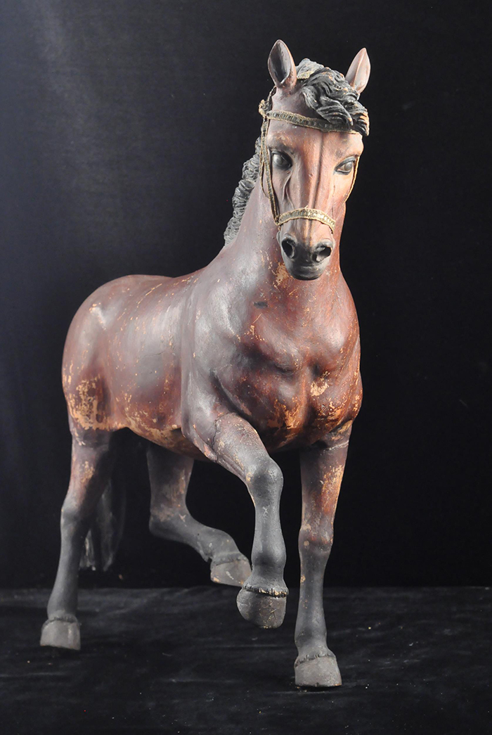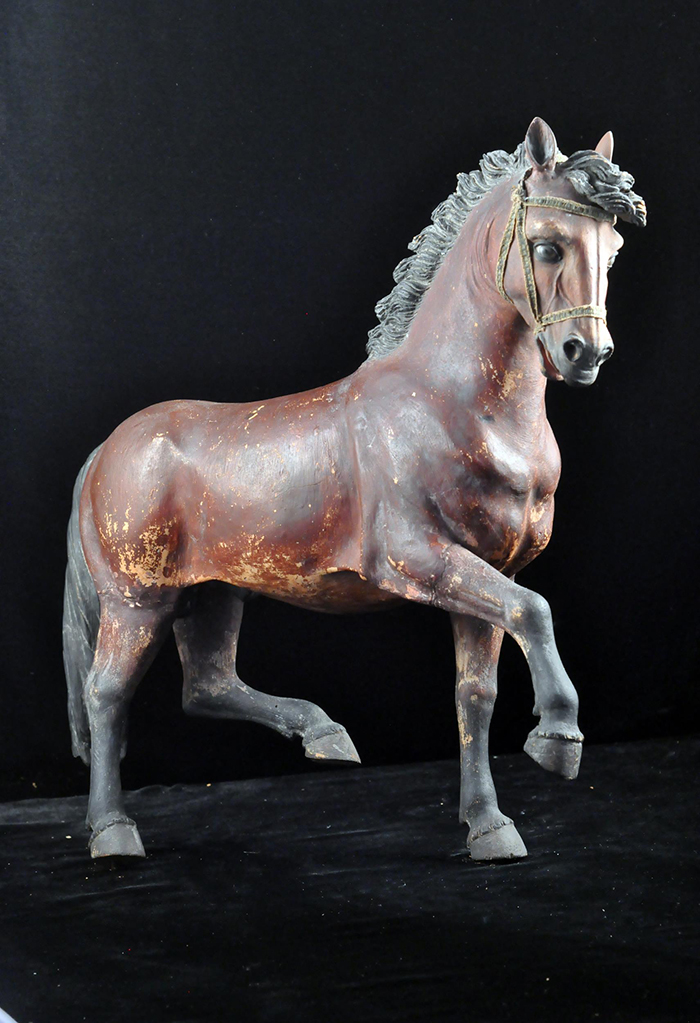 Cavallo terracotta policroma con piedi in legno l cm 34, h cm 34 Napoli XVIII - XIX secolo