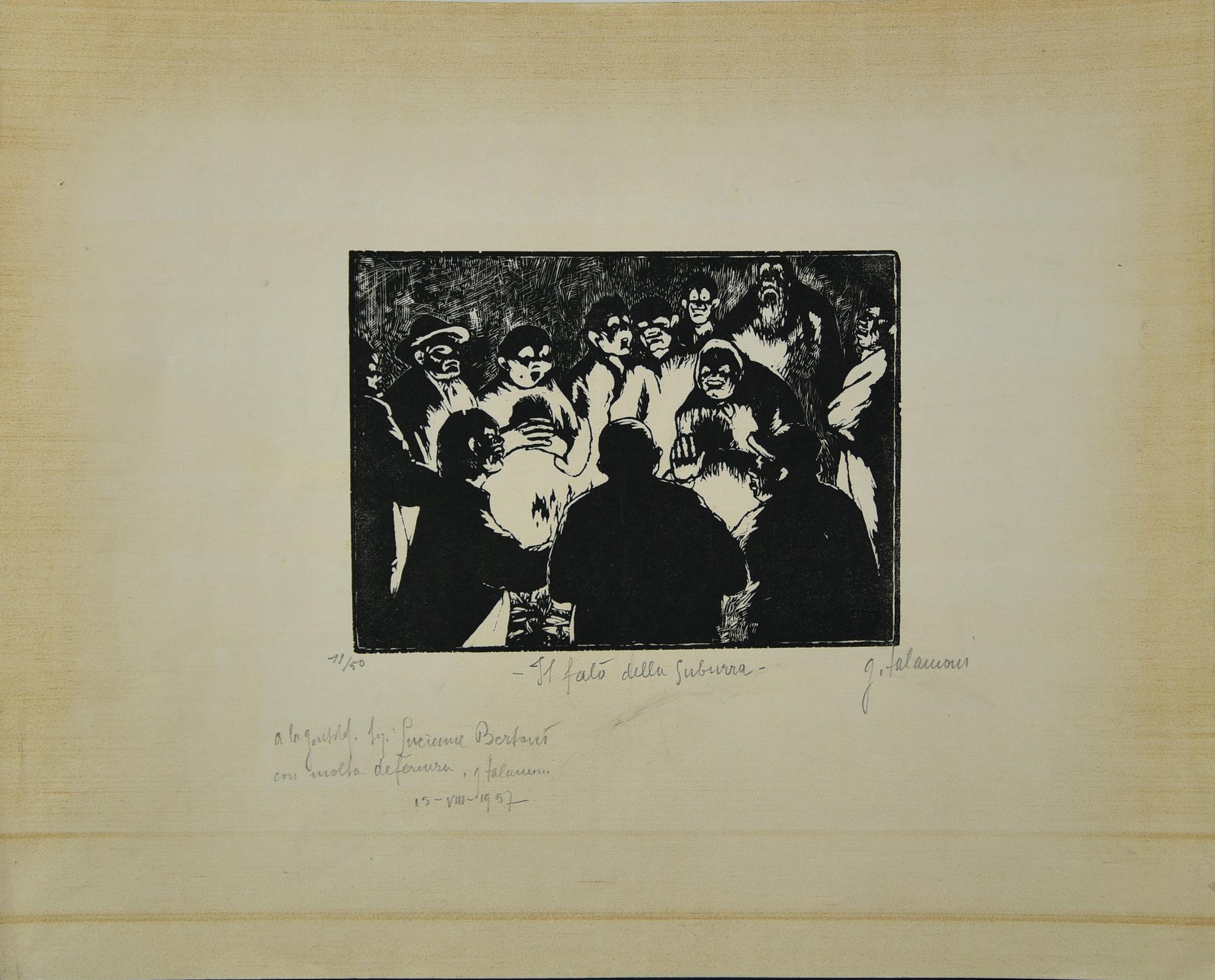 Giuseppe Talamoni IL FALO' DELLA SUBURRA acquaforte e puntasecca, cm...