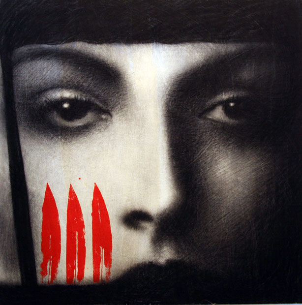 GALLIANI Omar Montecchio Emilia (Re) 1954 Nuovi fiori nuovi santi tecnica mista su tavola cm. 40 x 40 Titolo, firma 'Nuovi fiori nuovi santi, Omar Galliani' (al retro)