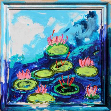 SCHIFANO Mario Homs 1934 - Roma 1998 Senza titolo (Acquatico), 1990 smalto e acrilico su tela con cornice dipinta cm. 117 x 117 Firma 'Schifano' (al retro) Autentica della Fondazione M.S. Multistudio, Archivio dell'Opera di Mario Schifano, con n° 90/556