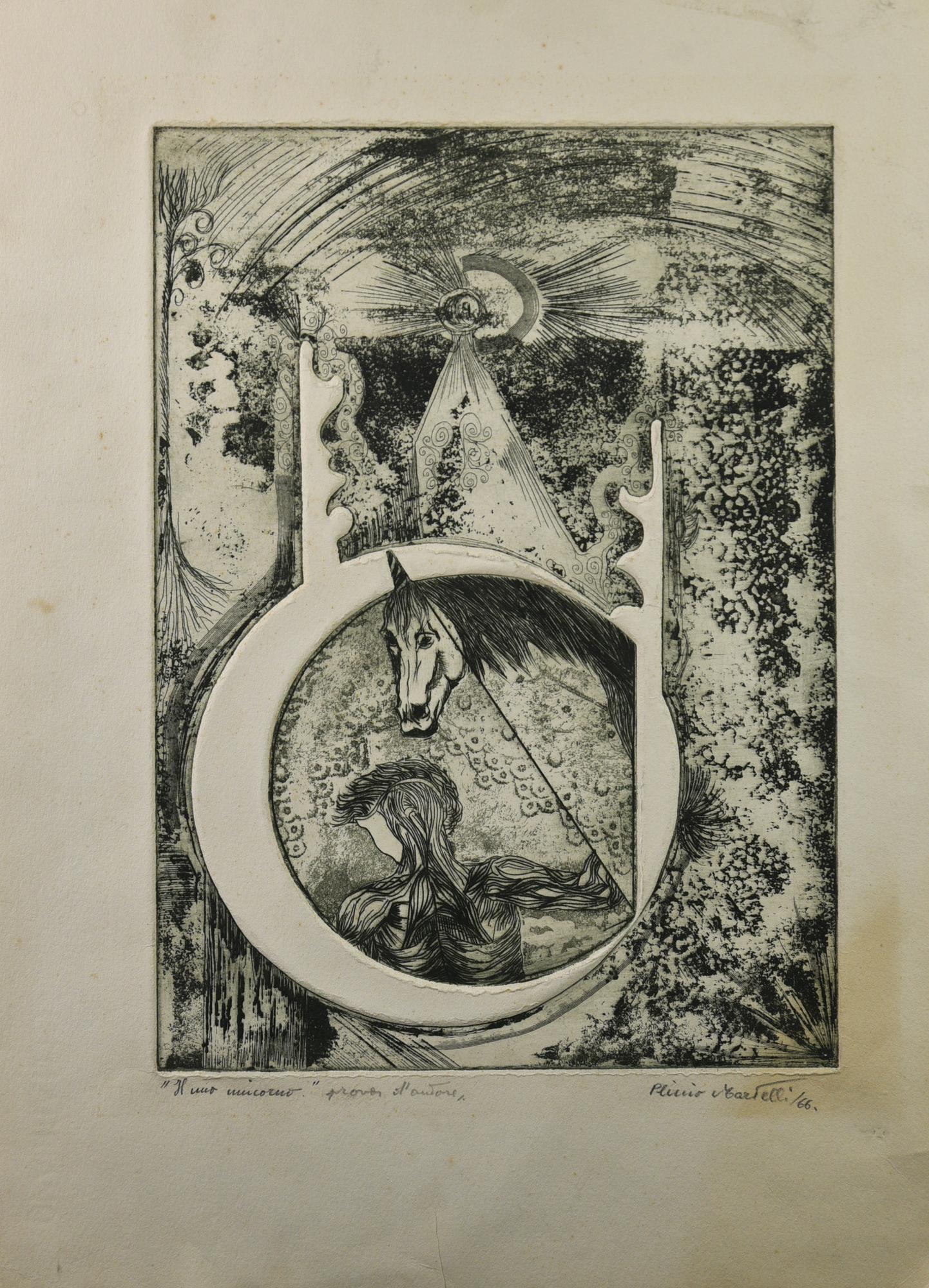 Plinio Martelli IL MIO UNICORNO, 1966 acquaforte-acquatinta, cm 35x24,5, su...