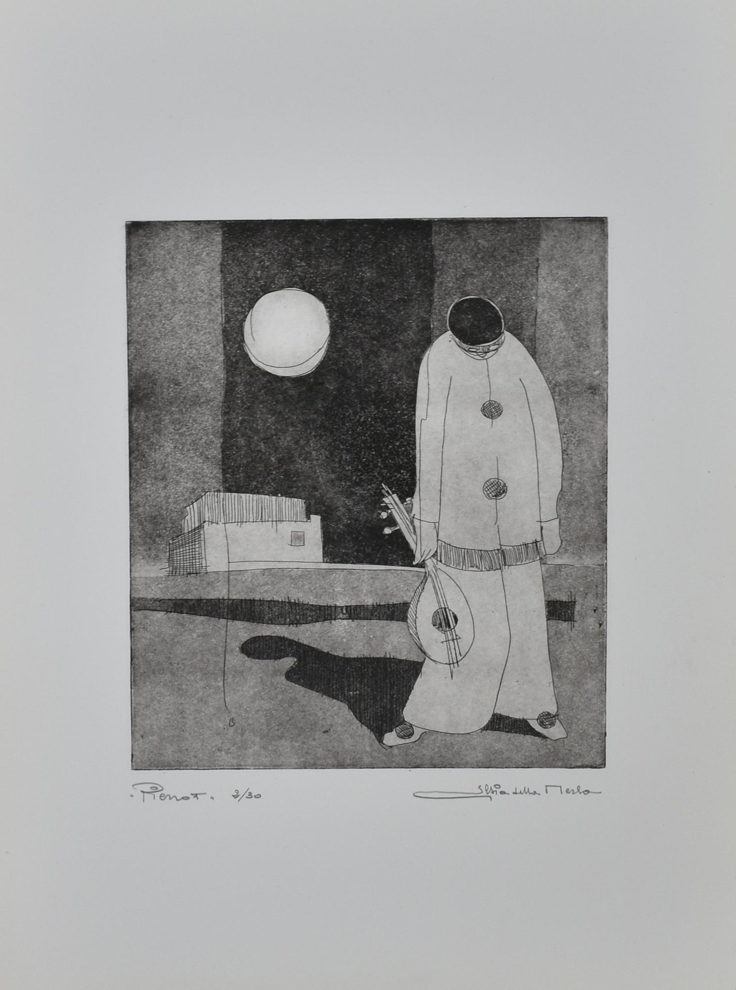 Lotto 71 | Gianni Sesia della Merla PIERROT incisione su carta, battuta cm 27x21; su...