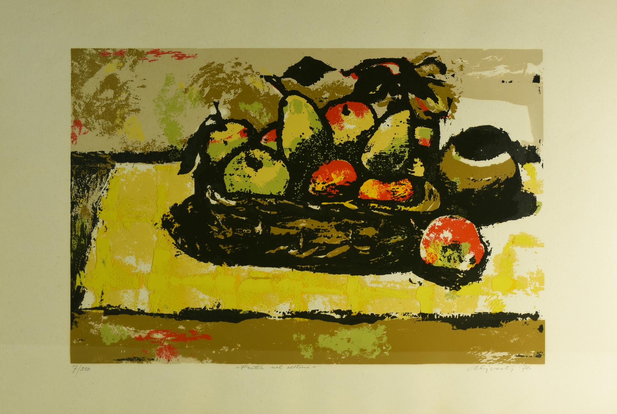 Cesare Aliverti FRUTTA NEL CESTINO, 1976 serigrafia su carta, cm 50x70; es....
