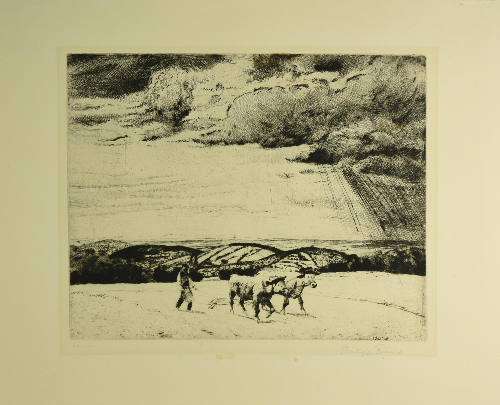 Franck Philippe SCENA DI CAMPAGNA incisione su carta, cm 31x37,5, su foglio...