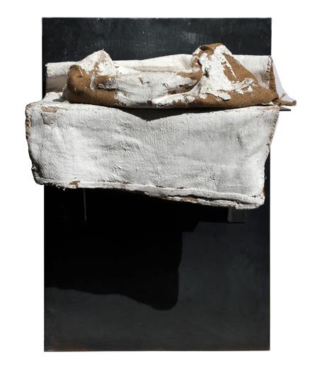 KOUNELLIS Jannis Pireo 1936 Senza titolo, 2001 ferro, sacco e gesso cm. 100 x 70 x 42 Autentica dell'artista su fotografia, con timbro della Galleria Dante Vecchiato