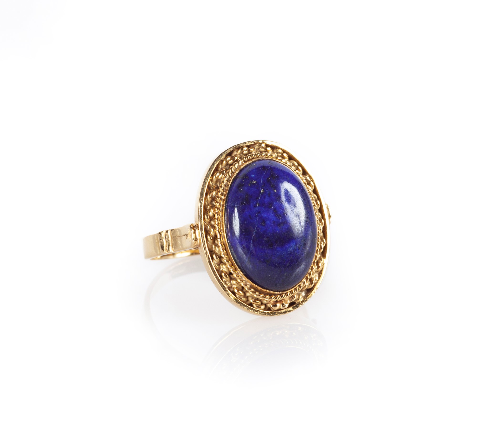 Anello in oro e lapislazzuli Misura 19 Oro giallo 750/000. Peso complessivo gr. 8,20.