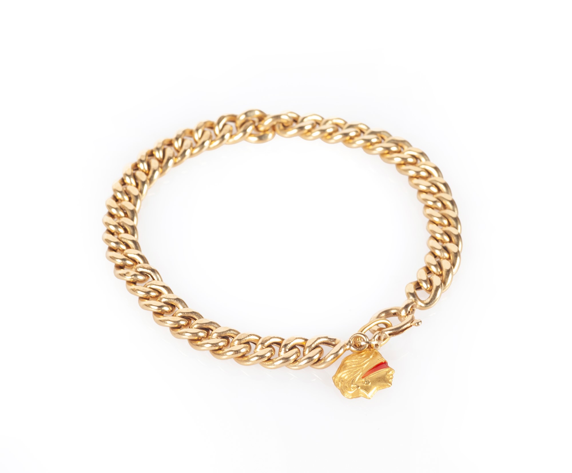 Bracciale in oro con pendente dea bendata Lunghezza cm 18 Oro giallo 750/000. Peso complessivo gr. 8,10