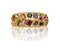Bracciale rigido in oro e pietre Veste polso cm 18 Oro giallo 750/000. Ametiste, tormaline, quarzi, topazi, acquamarine. Peso complessivo gr. 39,70.