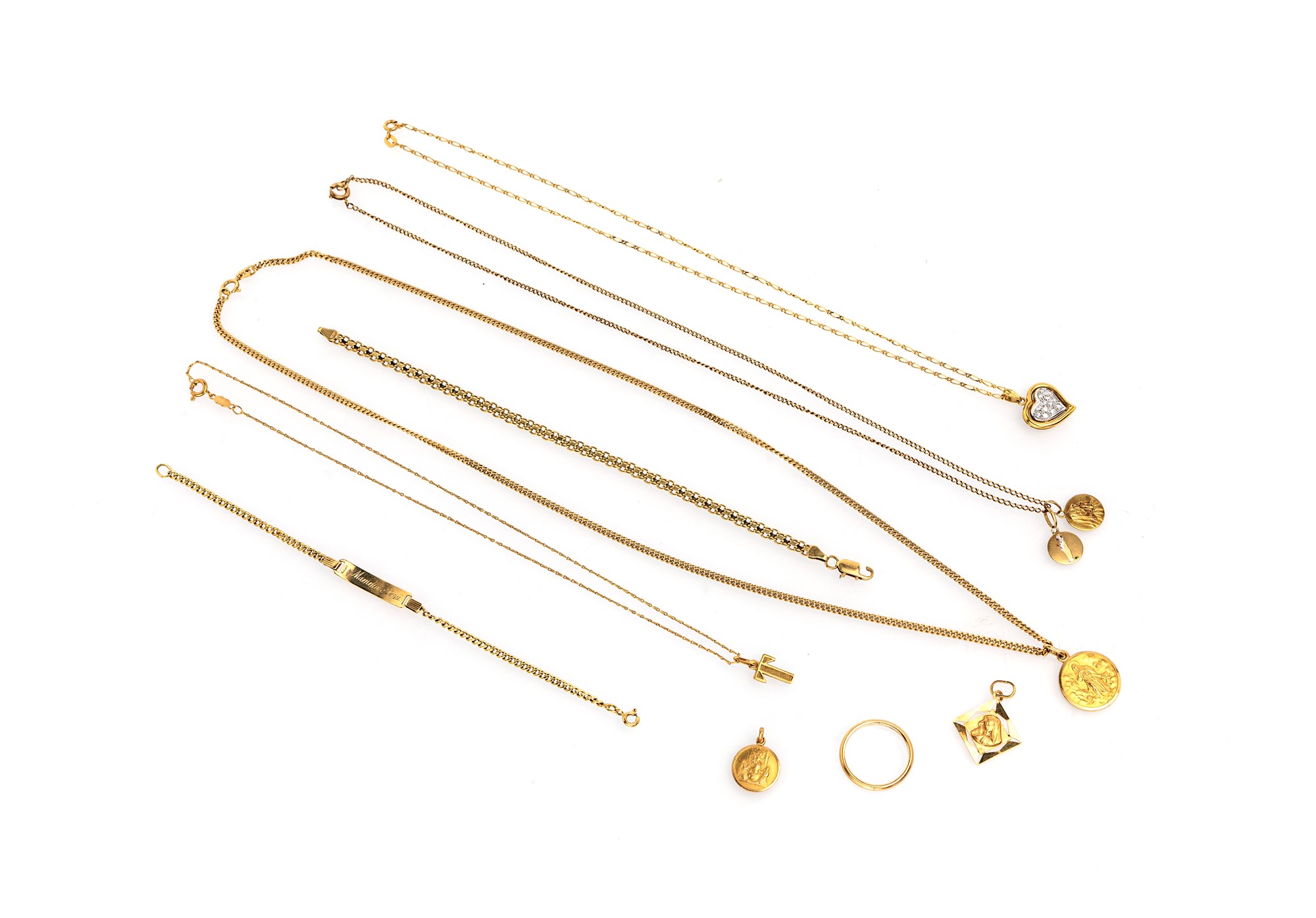 Lotto composto da 9 pezzi in oro Oro giallo 750/000. Peso complessivo gr. 49,60