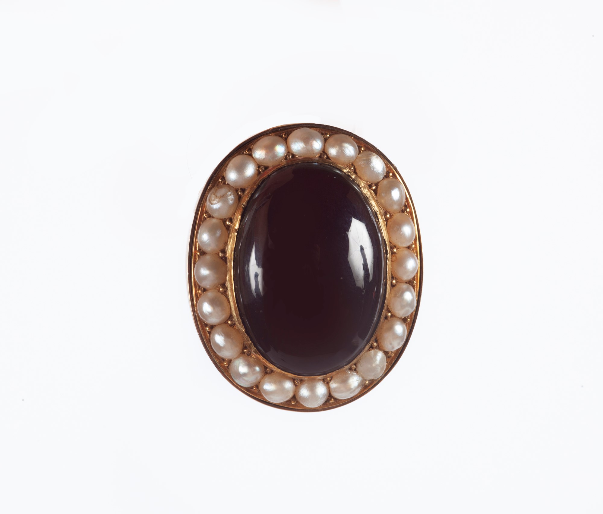 Lotto 113 | Spilla in oro con perline e pietra centrale