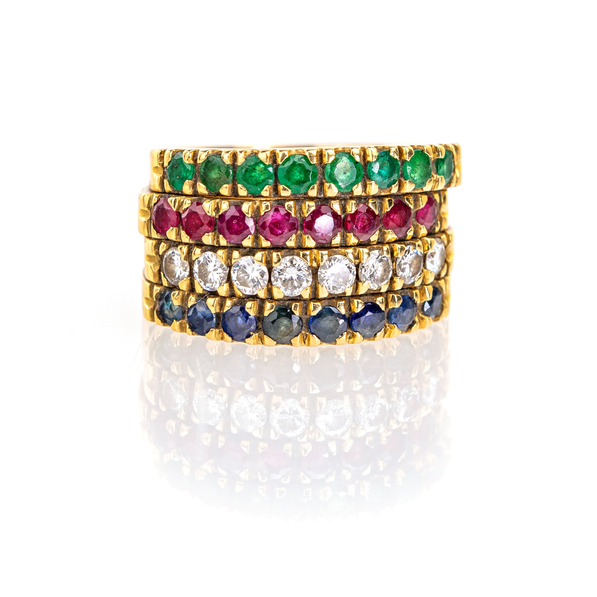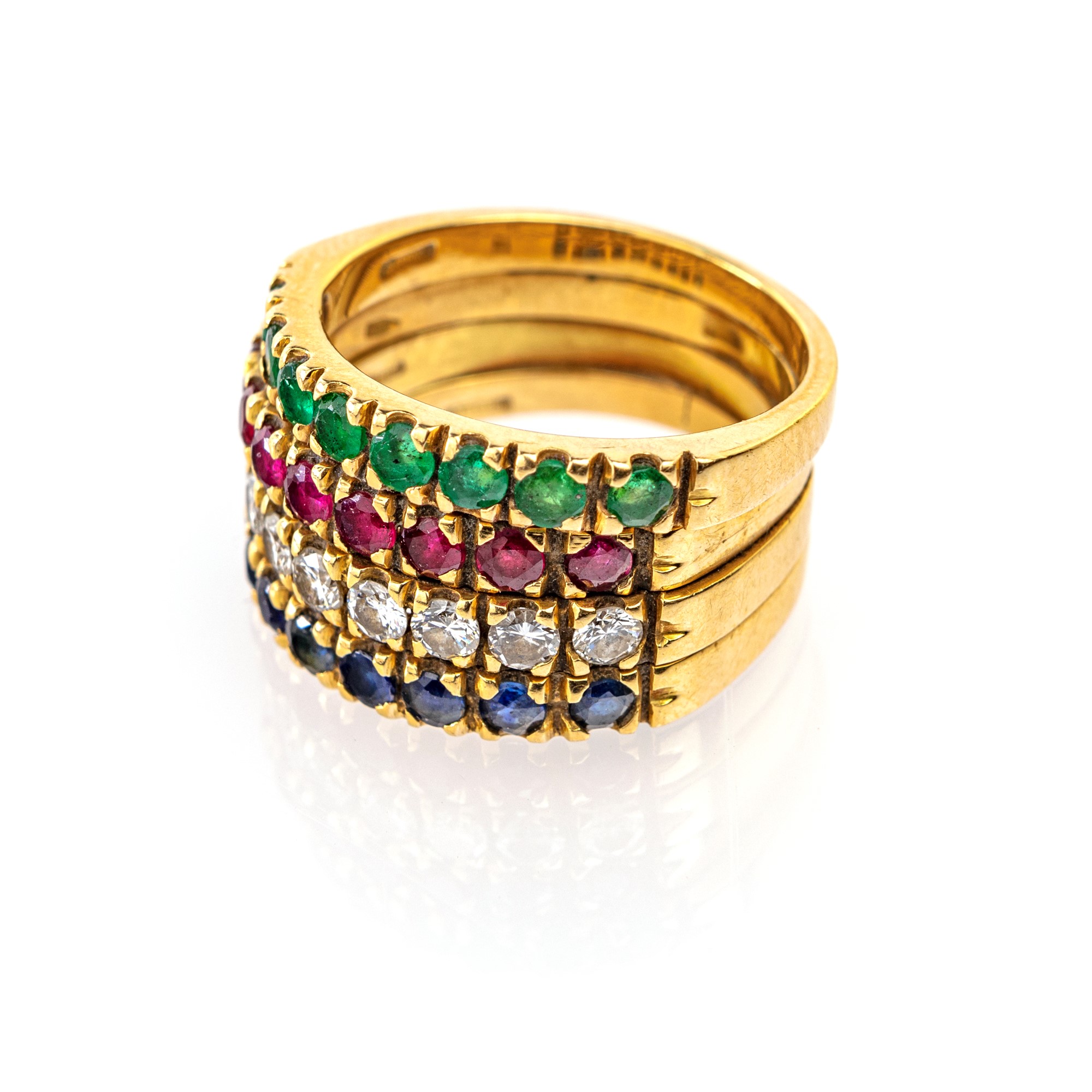 Anello in oro, brillanti, rubini, zaffiri e smeraldi