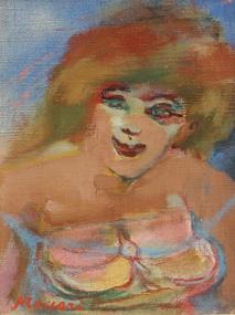 MACCARI Mino Siena 1898 - Roma 1989 Figura, anni 60 olio su tela cm. 24.5 x 18.5 Firma 'Maccari' (in basso a sinistra) Autentica dell'artista su fotografia