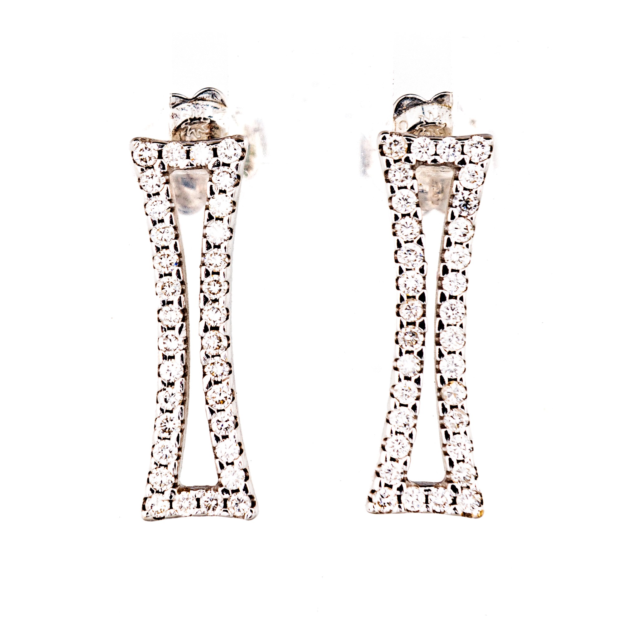 Chimento orecchini in oro e brillanti cm 2 x 0,5 Oro bianco 750/000. Diamanti in taglio rotondo brillante ct. 0,50 ca. F-G, VVS-VS. Peso complessivo 4,50.