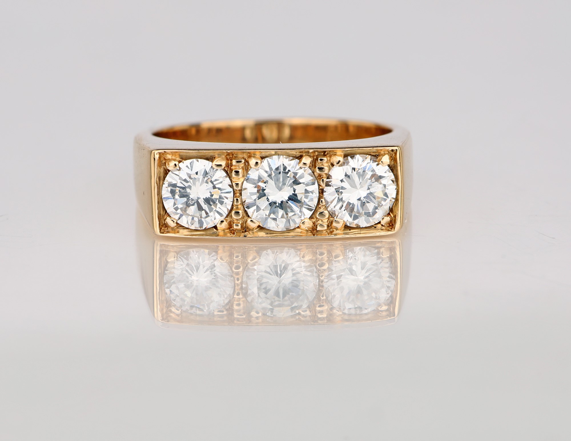 Anello a riviera in oro e brillanti Misura 17 Oro giallo 750/000. Diamanti in taglio rotondo brillante ct. 1,50 ca., prob. G-H, VS-SI. Peso complessivo gr. 9,10.