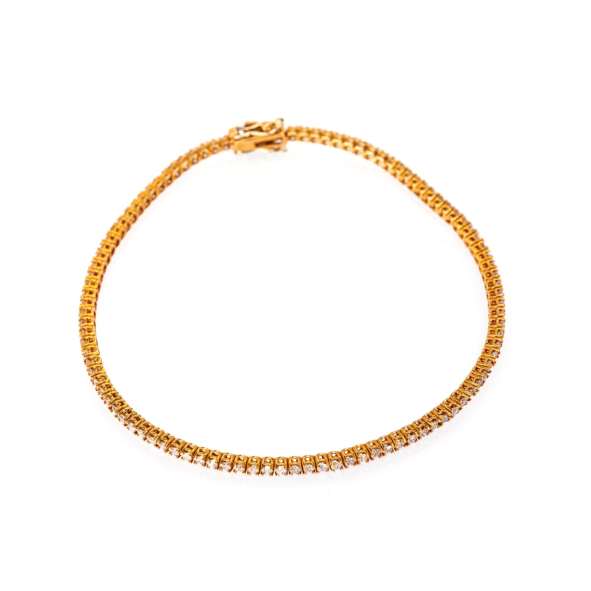 Bracciale tennis in oro e brillanti Lunghezza cm 18 Oro giallo 750/000. Diamanti in taglio rotondo brillante ct. 1,70 ca. , Prob F-G. VVS. Peso complessivo gr. 5,20