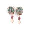 Orecchini pendenti tipo tuttifrutti in oro, argento, pietre preziose e perle