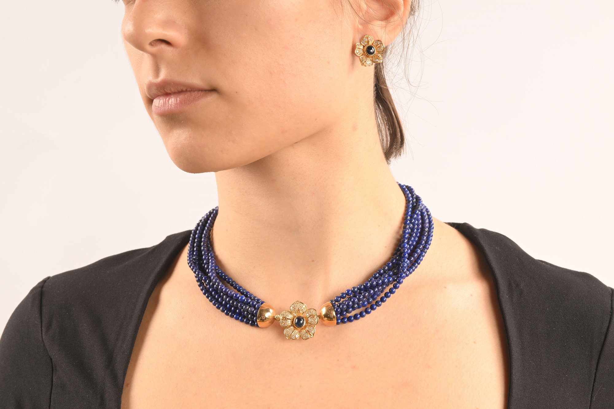 Parure in oro, zaffiri, brillanti e lapislazzuli