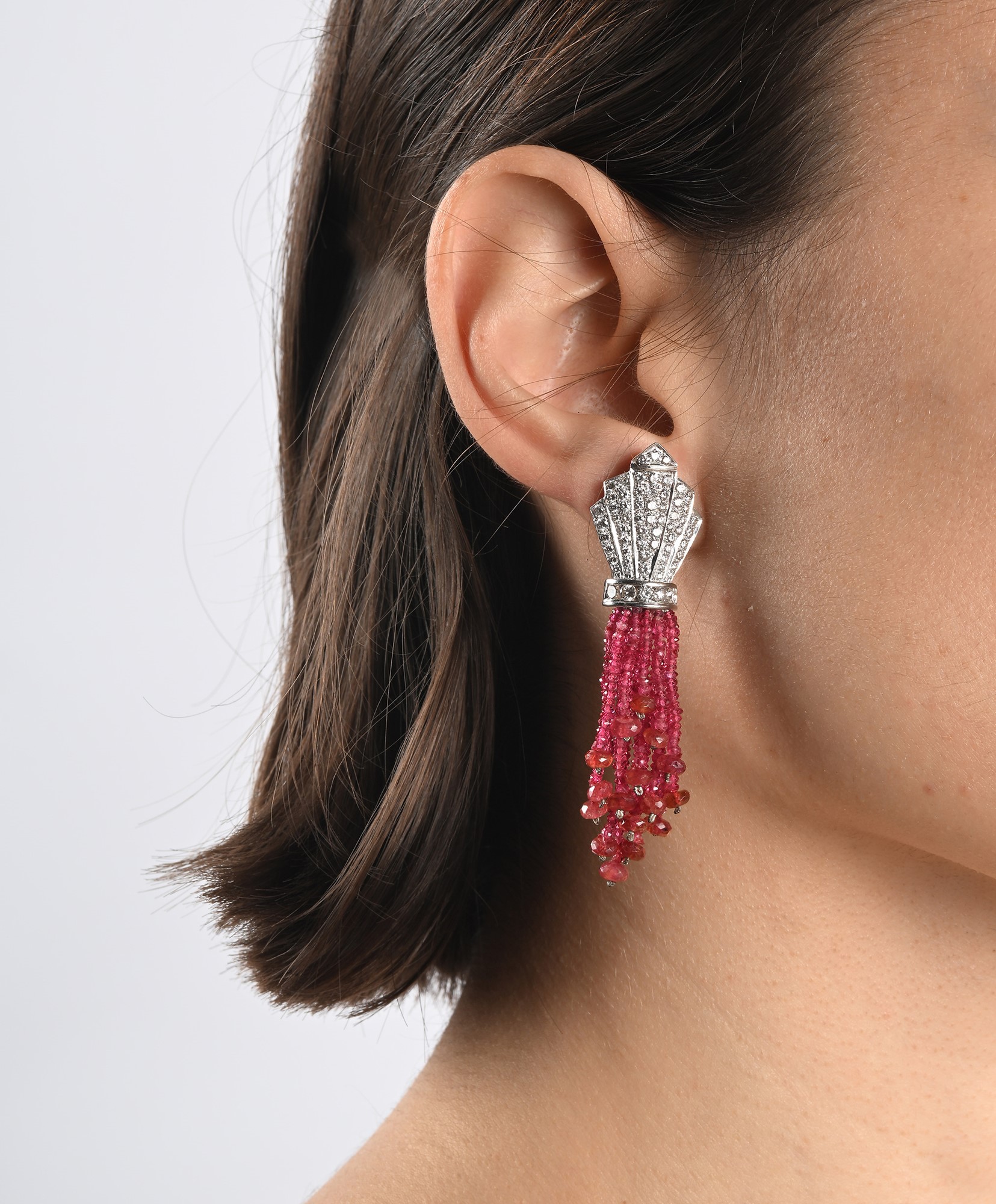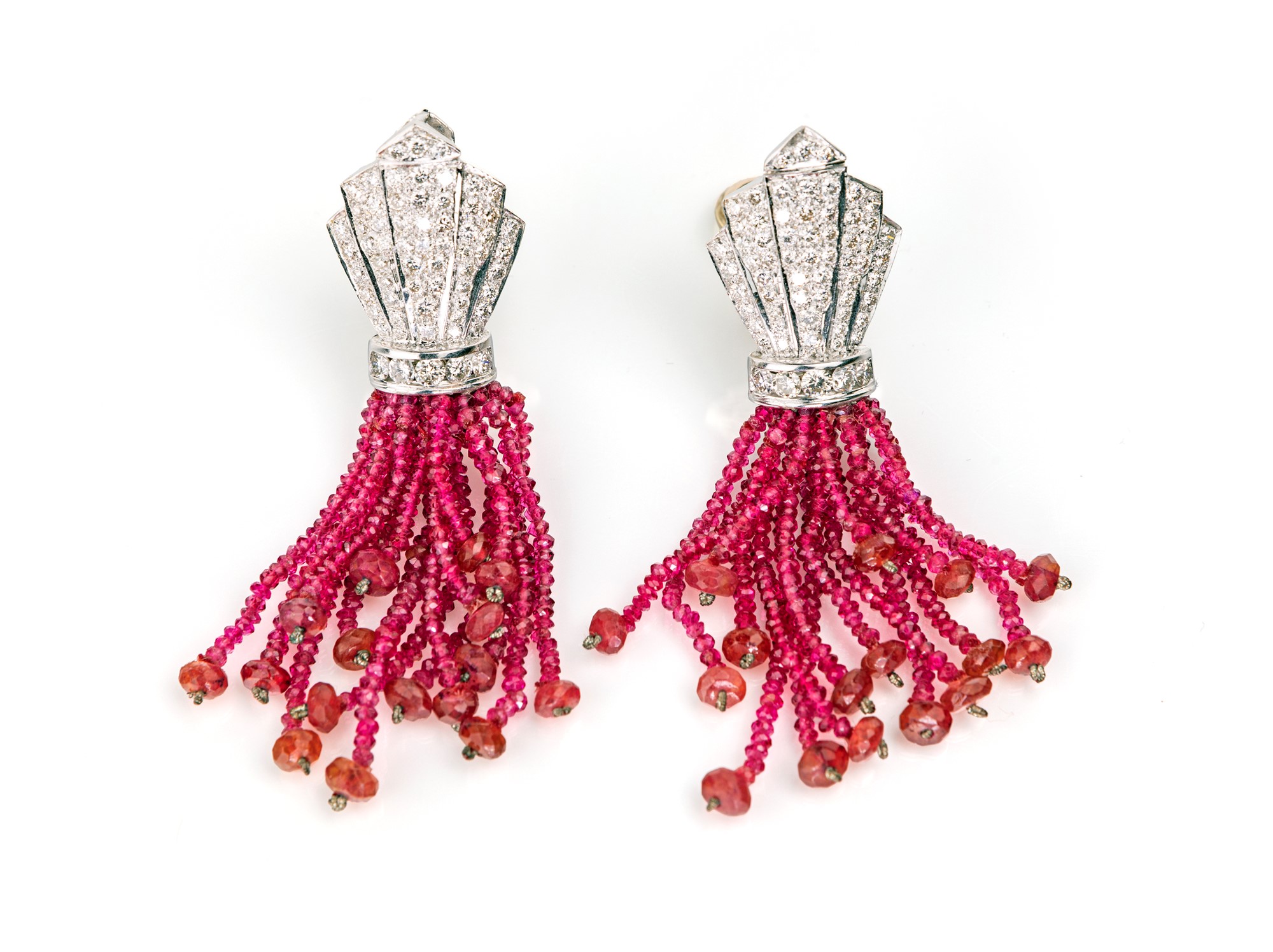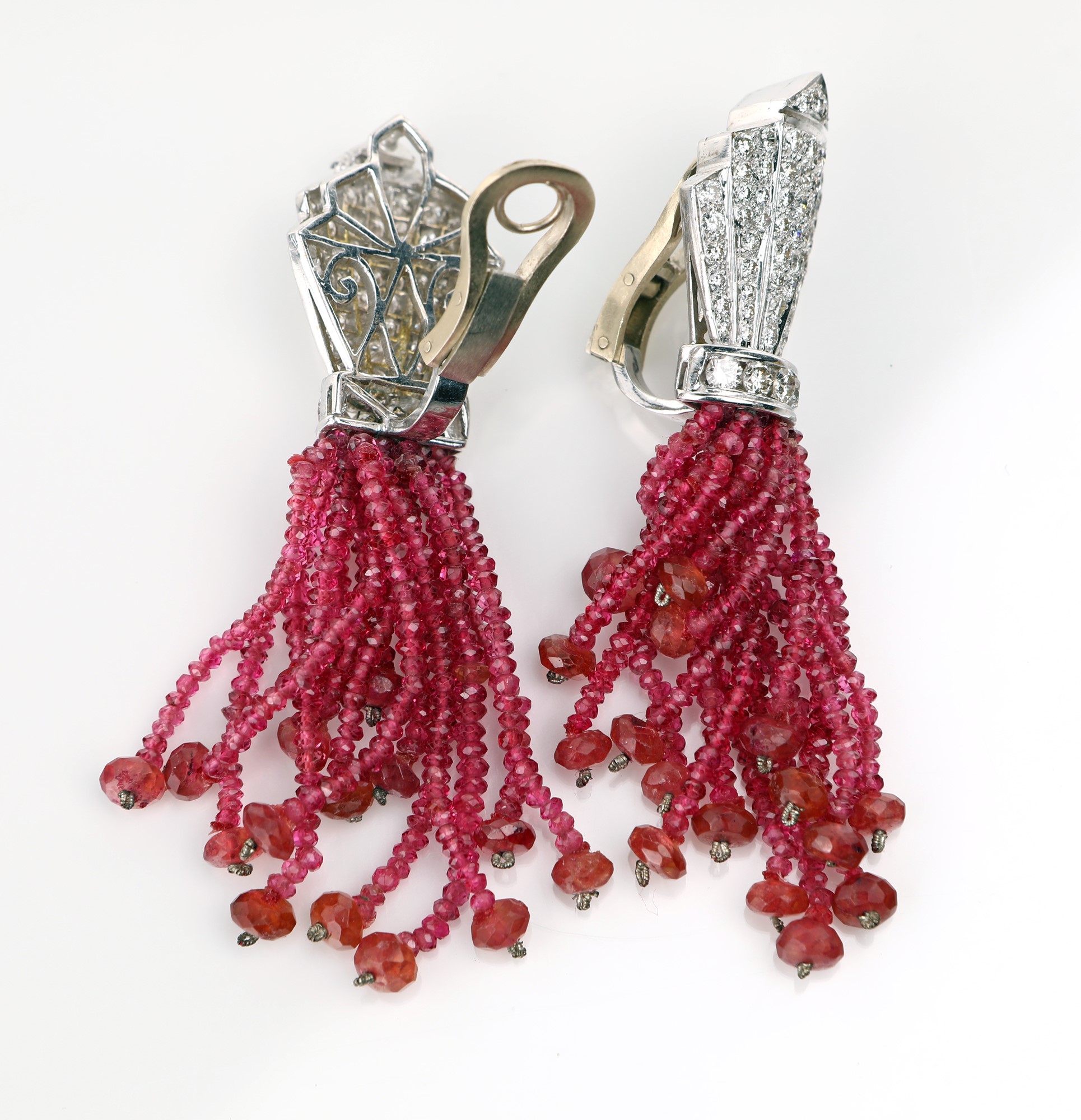 Lotto 285 | Orecchini in oro, brillanti e spinelli