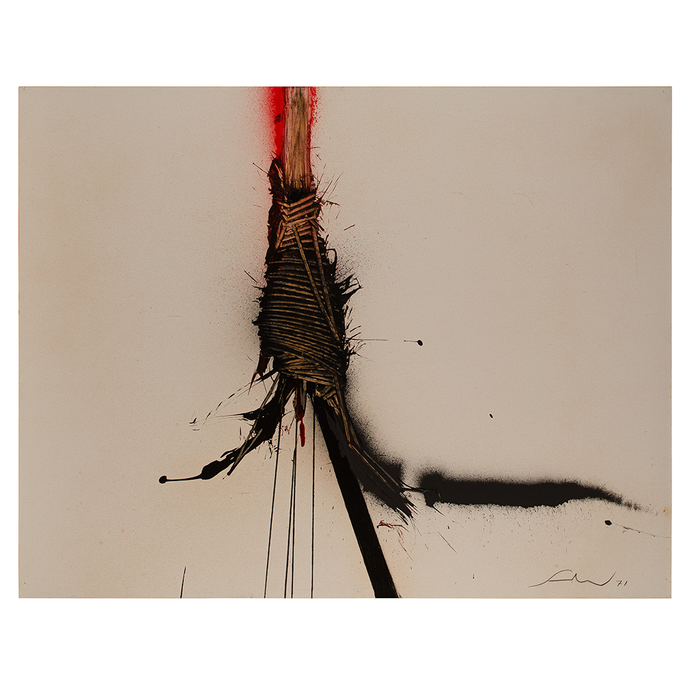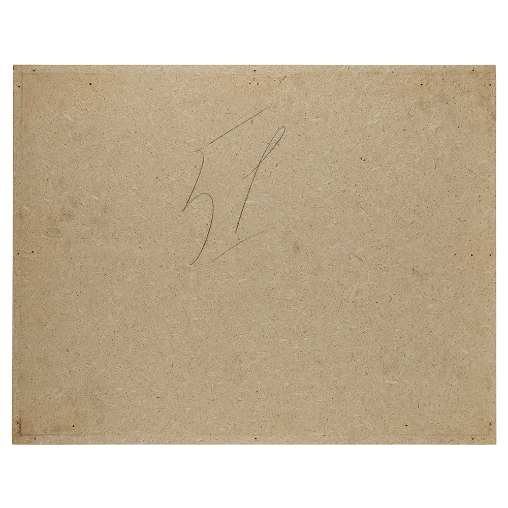 acrilico, matita grassa e inchiostro su cartone applicato in seguito su compensato , cm 47,2x60,3.