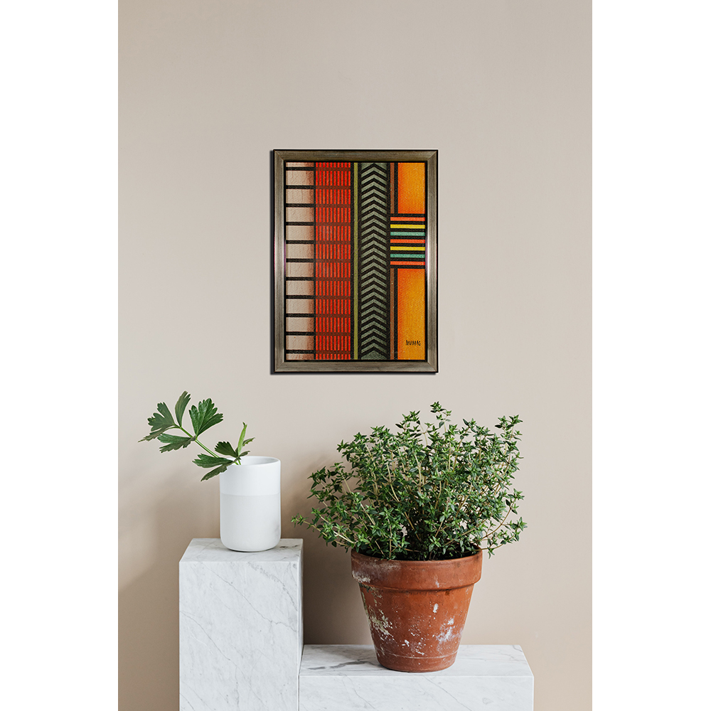 olio su sacco di juta applicato su tavola, cm 54,2x38,9.