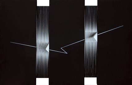 BIASI Alberto Padova 1937 Scende e sale, 1999 tecnica mista su tela e tavola cm. 50 x 75 Firma, data, titolo 'Alberto Biasi, 1999, Piccolo, Trittico, Scende e sale' (al retro) Autentica dell'artista su fotografia