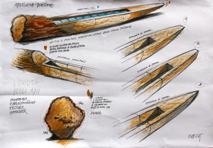 PLESSI Fabrizio Reggio Emilia 1940 L'enigma degli addii, 2001 tecnica mista su cartoncino cm. 70 x 100 Progetto per il Museo Correr, Biennale di Venezia, 2001 #Titolo 'L'enigma degli addii. Progetto per video installazione Kestner Hannover' (in basso a sinistra); #firma 'Plessi' (in basso a destra)