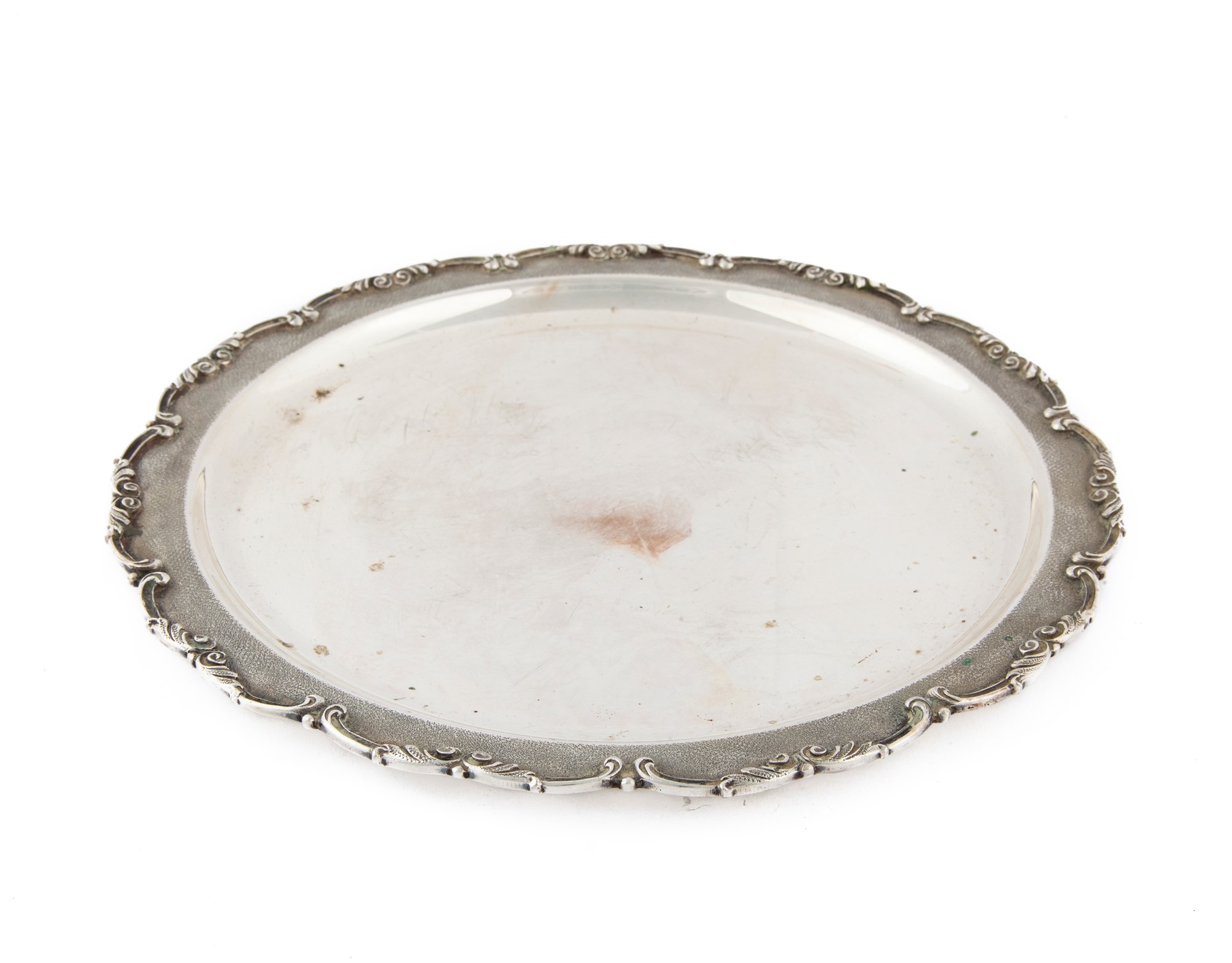 Piatto in argento con tesa satinata racchiusa da volute vegetali diametro cm 25 - 418